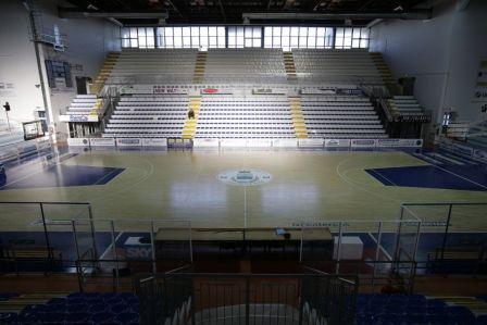 Il PalaMaggetti di Roseto degli Abruzzi, nel 2006, desolatamente vuoto dopo la morte sportiva del Roseto Sharks, alla fine del campionato di Serie A1 2005/2006. [Giovanni Lattanzi]