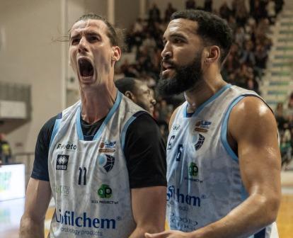 La grinta di Alessio Donadoni, con Jalen Cannon. [Mimmo Cusano]