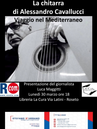 Lunedì 30 marzo 2026, con inizio alle ore 18 e ingresso gratuito, la libreria La Cura di Fabio Di Marco, in Via Latini a Roseto degli Abruzzi, ospiterà il concerto del chitarrista Alessandro Cavallucci, intitolato “Viaggio nel Mediterraneo”.