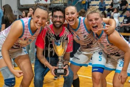 Eva Lizzi, Gianluca Braccili, Lavinia Lucantoni, Lucrezia Coser il giorno della promozione in Serie A1 delle Panthers Roseto.