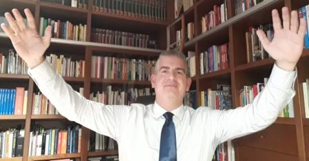 Luca Maggitti Di Tecco nella sua biblioteca.