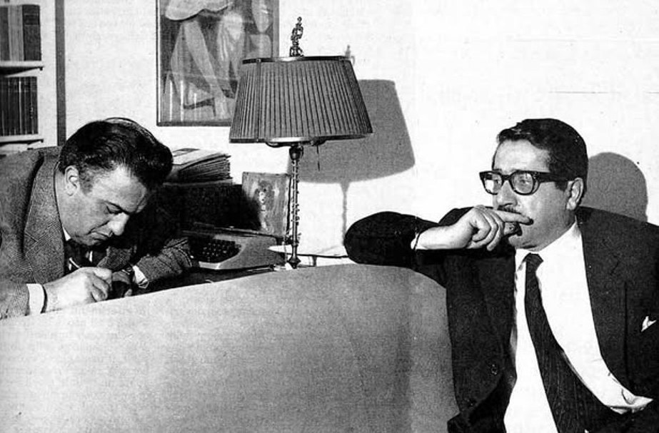 Federico Fellini, riminese, a destra nella foto, con Ennio Flaiano, nato a Pescara e con nonna materna di Montepagano.
