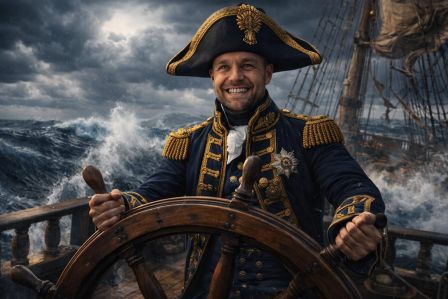 Coach Simone Righi, nei panni dell’ammiraglio Horatio Nelson, così come pensato da Luca Maggitti Di Tecco e creatoda ChatGPT.