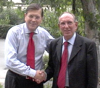 Roseto, 2003. Vittorio Fossataro con l’allora presidente della Lega Basket di Serie A, Enrico Prandi.