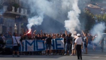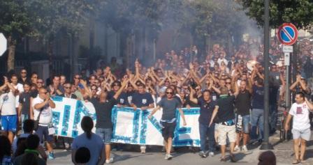 La Curva Nord Roseto entra in Piazza Sacro Cuore.