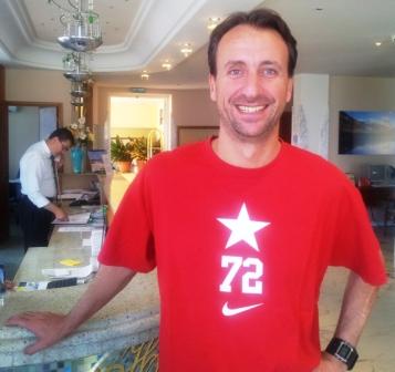 Lo staff della Nazionale, cordialmente, mi dice di ripassare alle 15. Esco e nel frattempo scrivo a Luciano Saborido, altro italiano d’Argentina (avi originari della Lombardia, mentre i Ginobili dovrebbero avere radici nelle Marche), dicendogli che di lì a poco intervisterò Sebastian Ginobili.