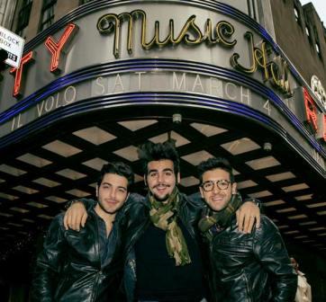 Il Volo – con Gianluca Ginoble primo a sinistra – davanti al Radio City Music Hall di New York.