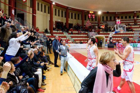 Giocatori e tifosi del Teramo esultano. [Teramo Basket / Gianluca Pisciaroli]