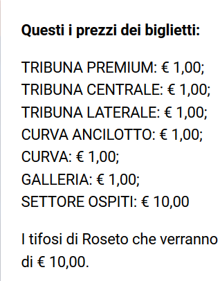 La Virtus Roma, in vista di Gara 3 – la bella che deciderà la serie del primo turno playout contro il Roseto Sharks – ha “pensato” di favorire l’afflusso dei propri tifosi agevolandoli con il biglietto unico da 1 euro, mentre – cito testualmente – “I tifosi di Roseto che verranno a sostenere la propria squadra saranno sistemati in Tribuna Ospiti F1 al prezzo invariato di € 10,00”.