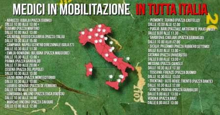 Venerdì 29 Maggio nelle piazze dei capoluoghi delle regioni italiane medici, studenti e professionisti del mondo sanitario (in conformità con le disposizioni e l’autorizzazione della Questura e del DPCM del 17 maggio) scenderanno in piazza indossando il camice bianco e una mascherina segnata con la con una X rossa e il numero 29 come simboli della protesta.