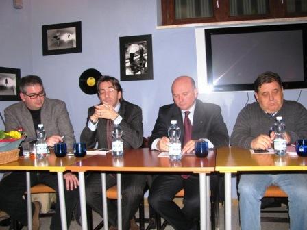 Giulianova, circolo virtuoso Il Nome della Rosa, 2010. Maggitti, Di Dalmazio, Di Michele, Crescentini, nel corso dell’incontro ‘Cultura in Abruzzo: attualità e prospettive’.