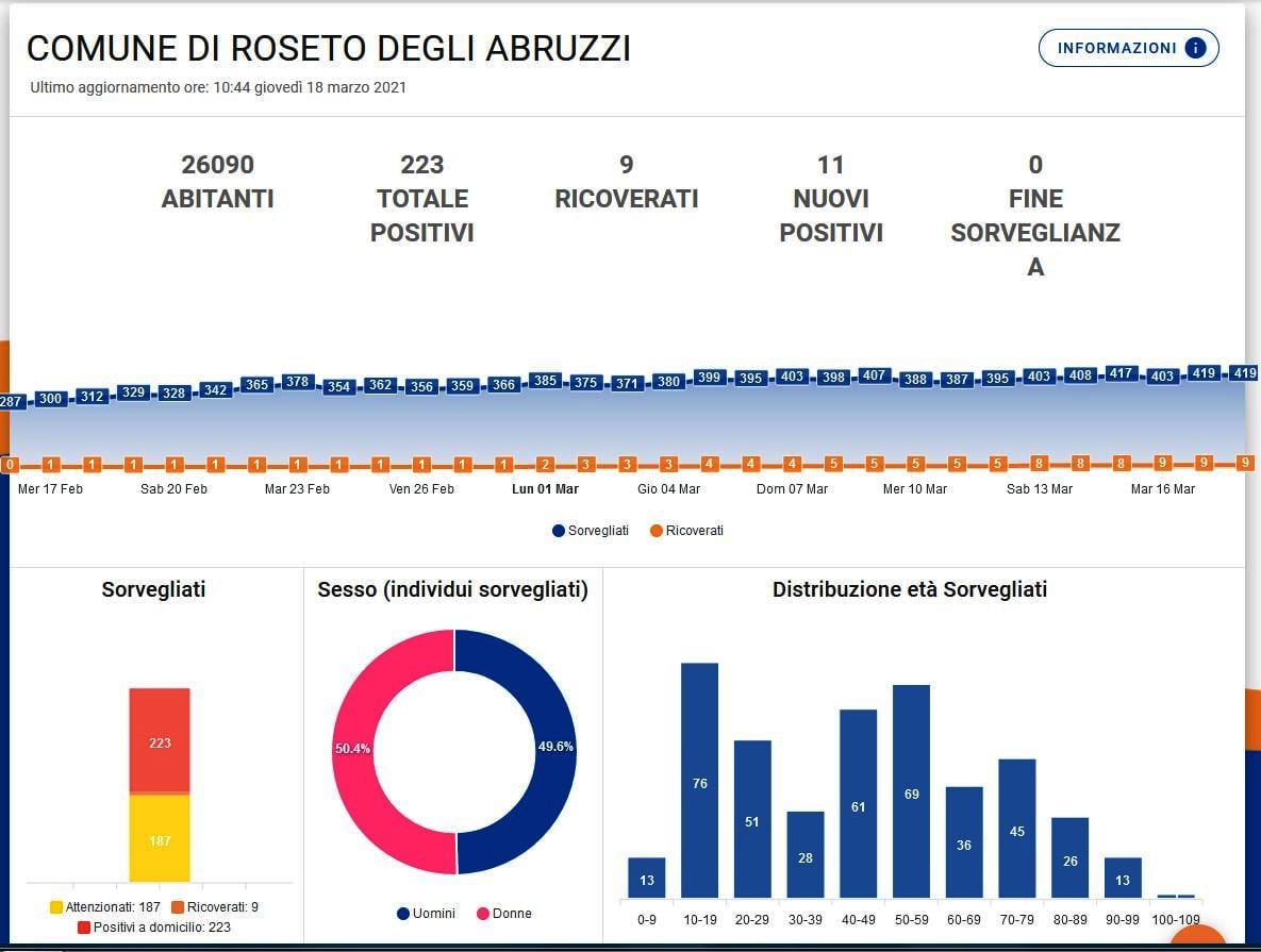 Ieri il sindaco di Roseto, Sabatino Di Girolamo, ha proposto sul suo profilo Facebook un nuovo report grafico che la ASL di Teramo ha redatto e messo a disposizione dei primi cittadini, che hanno le credenziale per consultarlo.