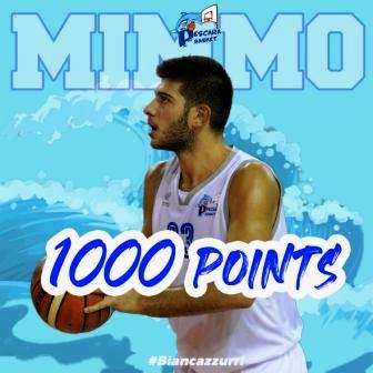 Domenico ‘Mimmo’ Fasciocco, del Pescara Basket, con i 16 punti messi a segno nella vittoria contro il Lanciano, ha superato quota 1.000 punti con la prima squadra biancazzurra. Il classe 2000 è al terzo posto della classifica marcatori di tutti i tempi della Pescara Basket, dietro ad Antonio Stilla e a Peppe Febo.