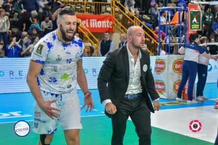 Kantor schiera Fabroni e Casaro nella diagonale principale, Zappoli e Disabato in posto quattro, Jeroncic e Frumuselu al centro con Zito libero. Coach Tommasello risponde con Paris in cabina di regia con Link opposto, Milan e Baldari gli schiacciatori, Basso e Bragatto i centrali con Giuliani ad amministrare la seconda linea.