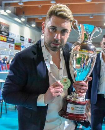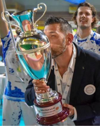 Giacomo Tomasello, coach del Pineto Volley, in occasione della vittoria della Coppa Italia di A3. [Andrea Iommarini Sport Photography]