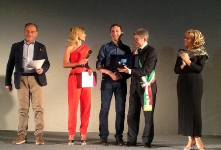 Roseto Opera Prima 2014. Sul palco, da sinistra: il preisidente della giuria, carlo Di Stanislao, la presentatrice Laura De Berardinis, il vincitore Fabio Mollo, il sindaco Enio Pavone, la vice sindaca Maristella Urbini.