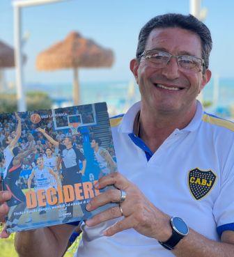 Vito De Palma con il libro Decidere di Luigi Lamonica che comprende Luis Scola in copertina. [Francesco Di Giuseppe]
