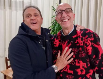 La gioia di Peppe Braccili – papà del presidente del Roseto Basket 20.20, Francesco – e di Gabri Di Bonaventura, per essersi rivisti 44 anni dopo essere stati compagni di squadra nella pallacanestro studentesca. [Mimmo Cusano]
