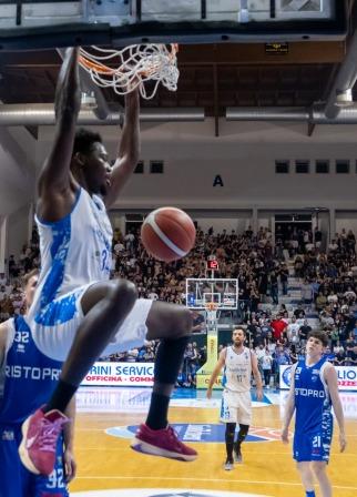 Elhadji Thioune, durante gara 2 fra Roseto e Fabriano, al PalaMaggetti. [Mimmo Cusano]