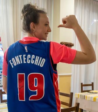 Eva Lizzi con la maglia dei Detroit Pistons di Simone Fontecchio.