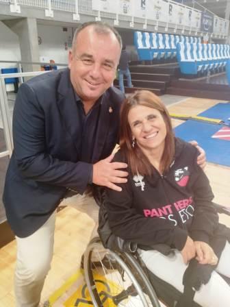 Paolo De Angelis, general manager di Schio, con Valeria Pappalardo, tifosa rosetana numero 1. [Massimiliano Torregrossa]