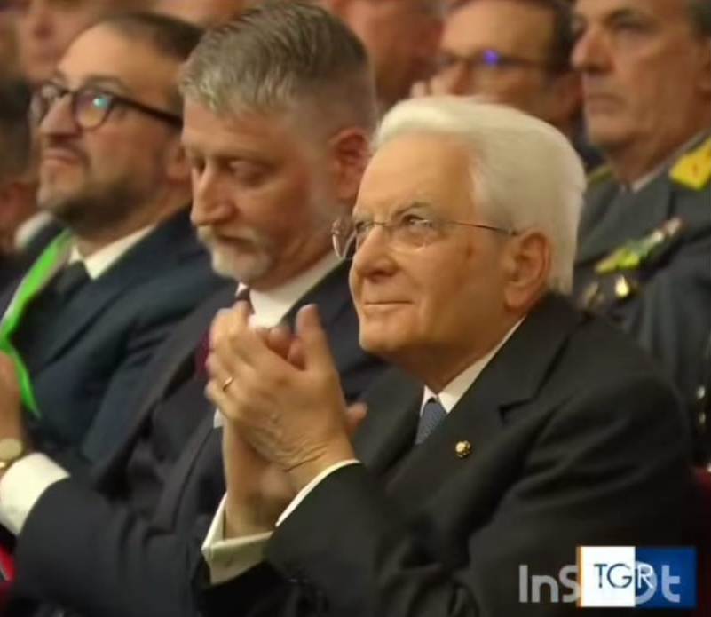 Il Presidente della Repubblica Italiana, Sergio Mattarella, applaude Gianluca Ginoble.