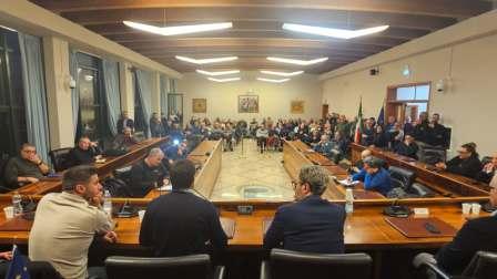 Mario Nugnes, sindaco di Roseto degli Abruzzi e i componenti del Consorzio Le Quote, proprietario unico della Pallacanestro Roseto.