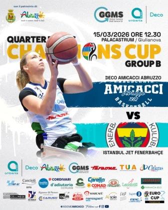 Gli Amicacci Abruzzo Giulianova, in virtù dell’eccezionale secondo posto ottenuto la scorsa stagione, hanno avuto accesso diretto ai Quarti e proveranno di nuovo a qualificarsi per la finale a quattro, anche se sono inseriti in un girone difficilissimo insieme ai tedeschi del Thuringia Bulls, agli spagnoli dell’Ilunion Madrid e ai turchi del Fenerbahce Istanbul.