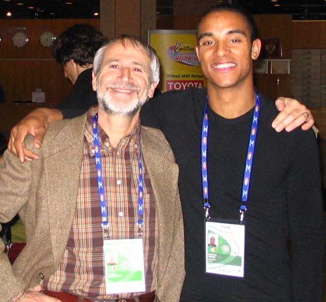 IL PROF E IL ‘BAMBINO’ Claudio Mazzaufo e Andrew Howe a Mosca in occasione dei Mondiali Indoor di Atletica Leggera di Marzo 2006, in cui Howe ha vinto la medaglia di bronzo di salto in lungo con la misura di 8 metri e 19 centimetri: la prima ‘vera’ affermazione dell’atleta, alla quale ha fatto seguito la consacrazione, avvenuta agli Europei di Goteborg con la vittoria della medaglia d’oro.