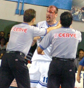 Matteo Maggioni, ferito a sangue durante una gara nella quale giocava con il Brindisi.