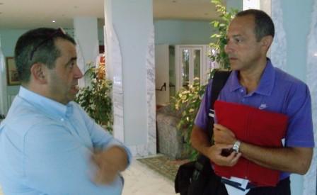 Daniele Cimorosi, socio di riferimento del Roseto Sharks, a colloquio nell’estate del 2009 con Ettore Messina, coach del Real Madrid.